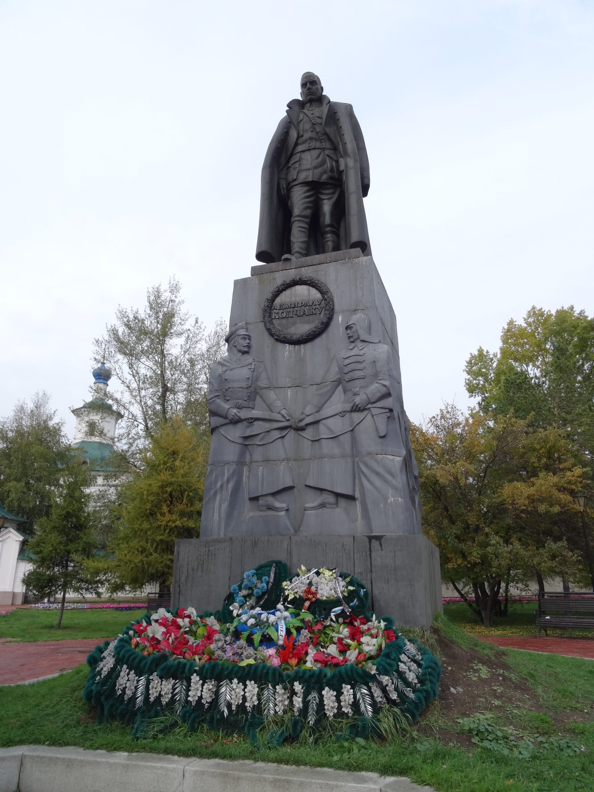 A stop over to visit Lake Bakail, the world’s oldest and deepest freshwater lake. When the Sukhov family fled on the Trans Siberian the tunnels under Lake Bakail had been blown up. We spent time in the Taiga, the famous coniferous forest belt across Siberia, and Irkutsk, a city which actually acknowledged the existance of the civil war in their museum, and recognised Admiral Kolchak, as the leader of the White Anti -Bolshevik Army with a statue located on the river bank where he was murdered and thrown in the river. Note, the wreaths at the bottom of the statue, he is still revered today.